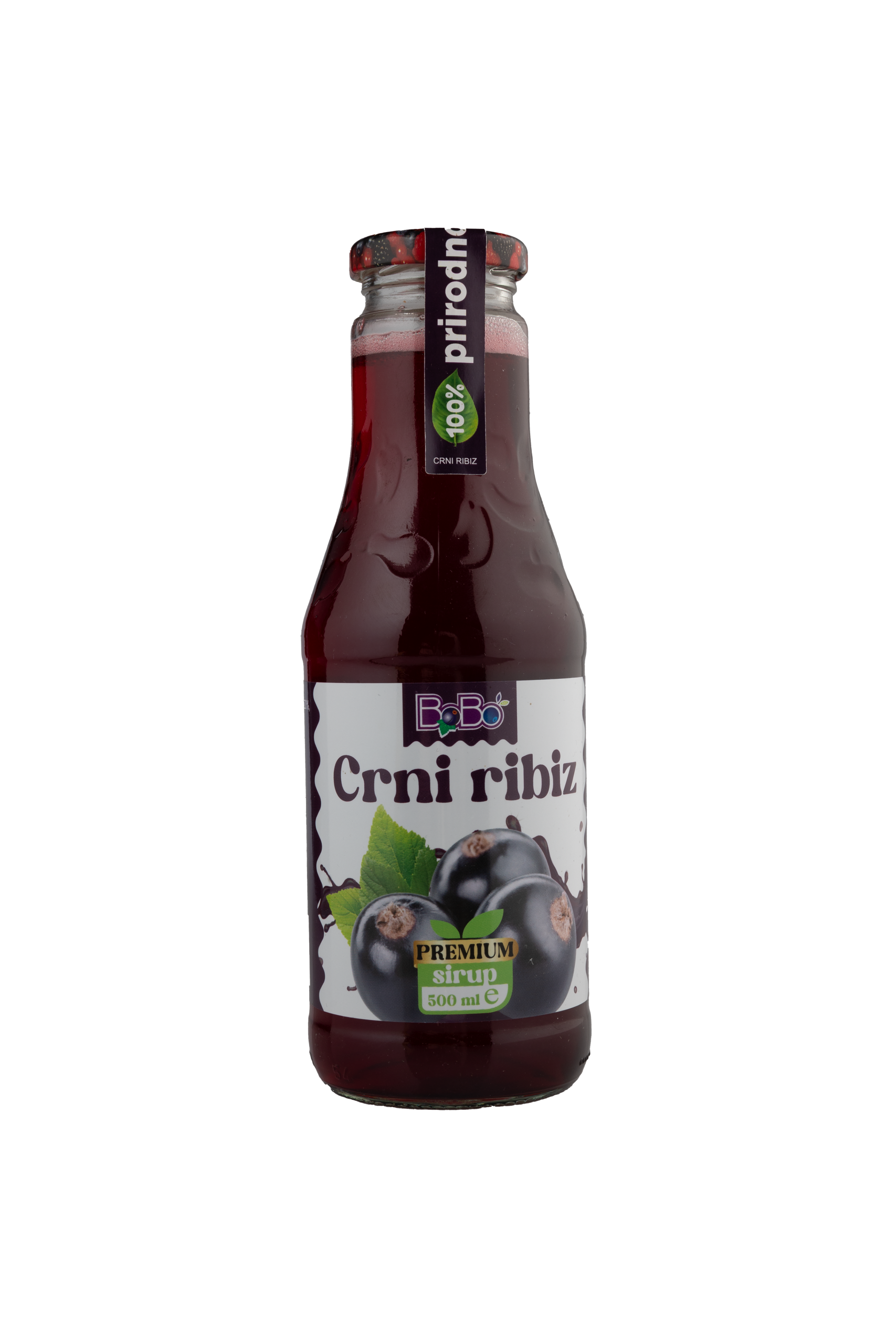 Sirup od  ekološkog crnog ribiza. Sastav: eko sok crnog ribiza, šećer, lim.kiselina i voda. Pasteriziran, bez konzervansa i umjetnih bojila. Crni ribiz sadrži sedam puta više c-vitamina nego  limun. Bogat je željezom i koristi se kao lijek kod anemije jer željezo se u krvi veže na c-vitamin, a u ribizlu je idealan omjer tih dviju tvari. Bogat je antioksidansima, vitaminima, mineralima, elementima u tragovima… Koristi se za jačanje organizma, kod prehlade i gripe, ateroskleroze, visokog krvnog tlaka, srčanih poremećaja, moždanog udara i raka. Također je dobar kod neurodegenerativnih bolesti poput Parkinsove bolesti, demencije i poremećaja raspoloženja.