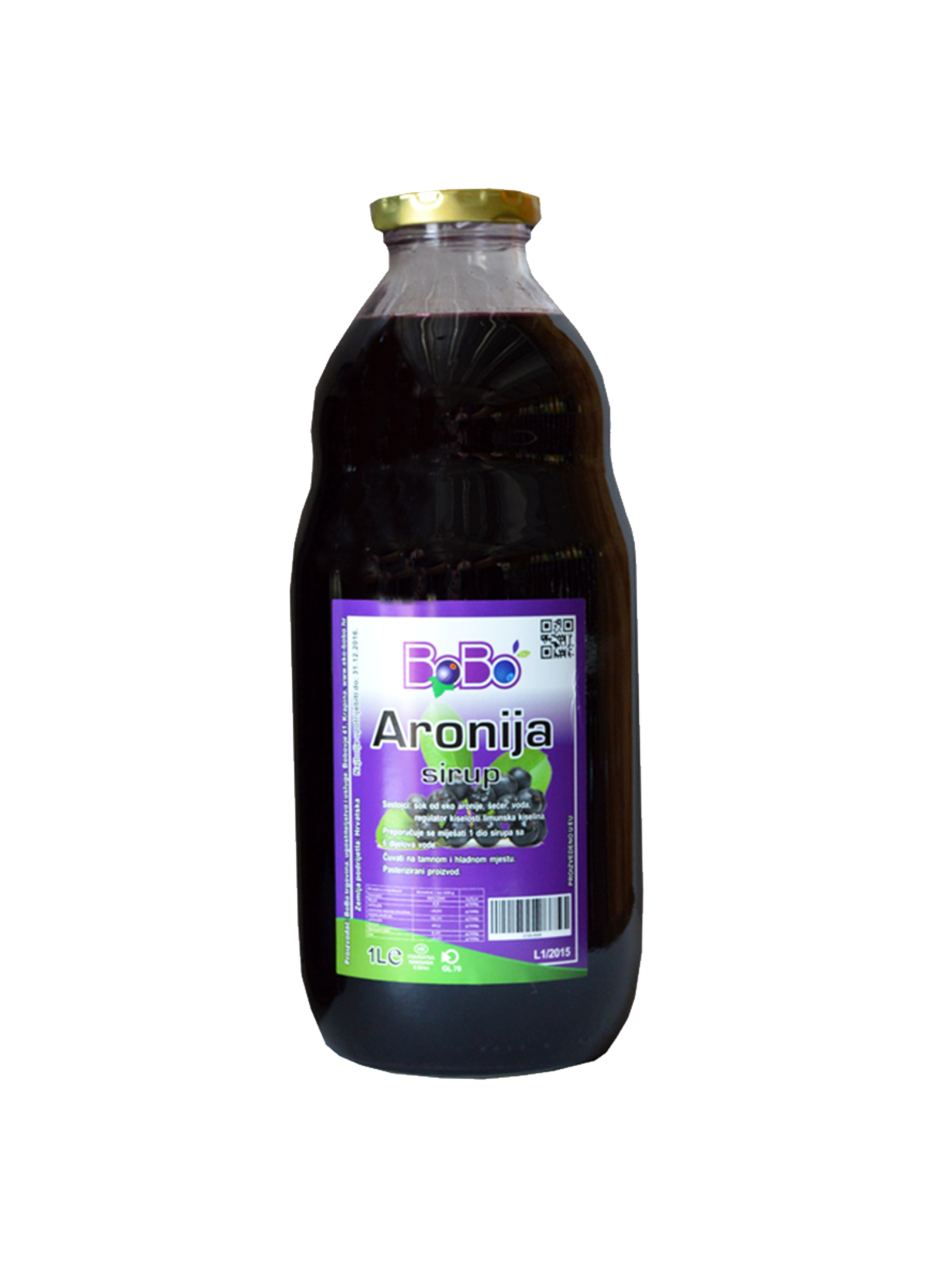 Sirup od aronije. Sastav: sok aronije, šećer, lim.kiselina i voda. Pasteriziran, bez konzervansa i umjetnih bojila. Aronija se odlično pokazala kod razlićitih bolesti: šećerna bolest, povišen kolesterol u krvi, raka… Aronija popravlja krvnu sliku, poboljšava cirkulaciju, regulira tlak. Dobra je za imunitet i čišćenje organizma. Održava vitalnost organizma i dobar vid.